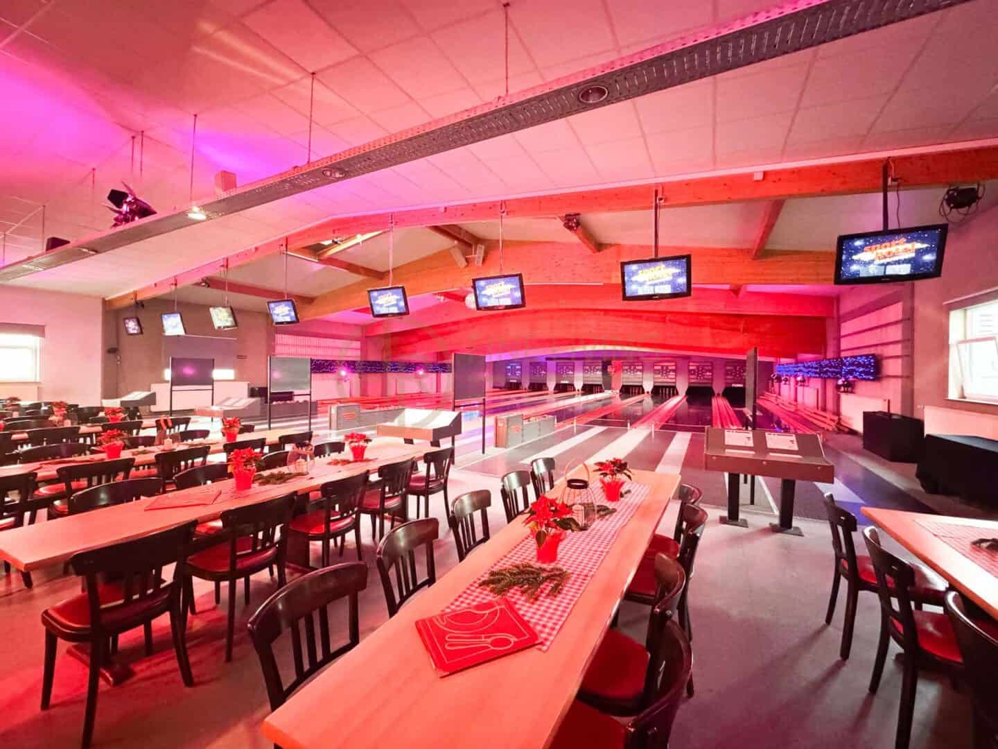 8 Kegelbahnen, Bar, Veranstaltungsraum, Küche