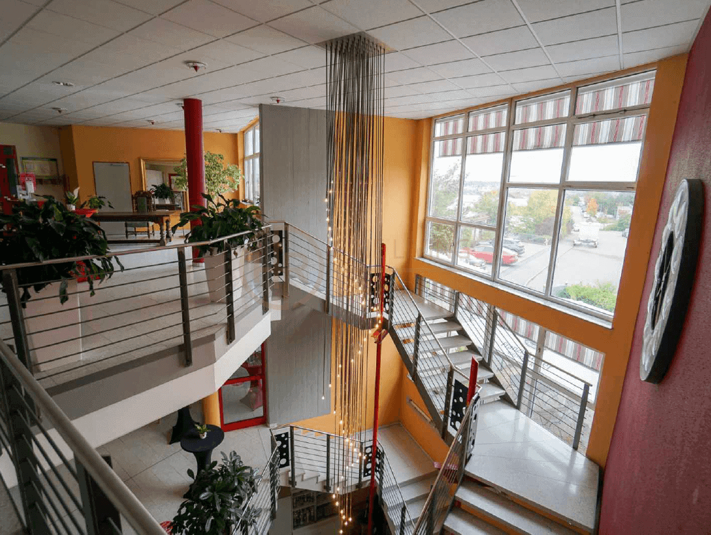Angrenzend an das Hauptgebäude, mit separatem Zugang über die Nordseite, befindet sich das rund 800 m² große Fitnessstudio, das unter dem renommierten Namen „Powerhouse Gym“ firmiert.