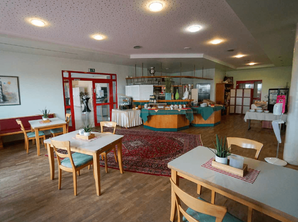 Zwei lichtdurchflutete Frühstücksräume laden zum Verweilen ein – perfekt für ein reichhaltiges Buffet am Morgen. Für geschäftliche oder private Veranstaltungen steht ein flexibel teilbarer Tagungsraum zur Verfügung – ideal für Seminare, Familienfeiern oder Firmenveranstaltungen.